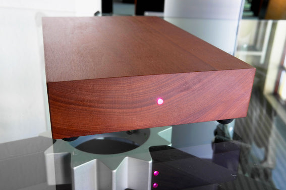Das formschöne und aufwändige Gehäuse wird in einer Atelier-Schreinerei mittels einer 3D-CNC-Fräsmaschine aus dem Vollen gefräst, danach von Hand mehrfach mit biologisch zertifiziertem Öl behandelt und gewachst.